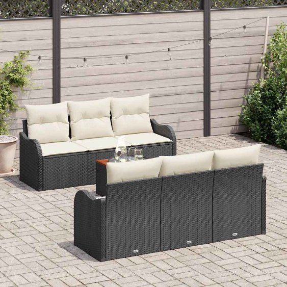 Gartensofa-set mit Speicher 7 pcs Schwarz und Creme Poly-Rattan