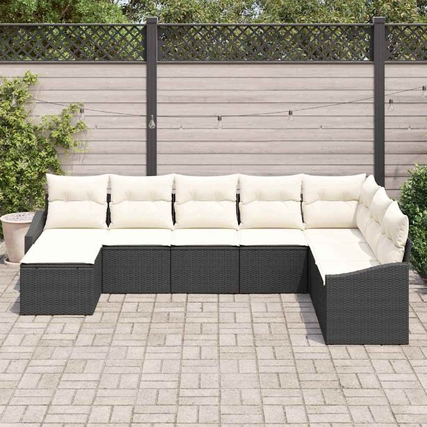 Sofa Set mit Kissen 8 pcs Schwarz Poly-Rattan