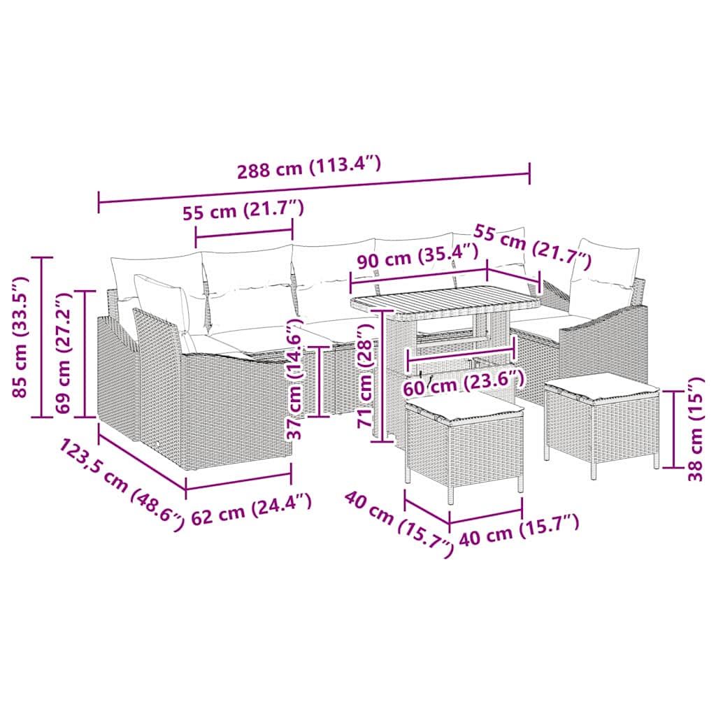 Gartensofa-set mit Kissen 10 pcs
