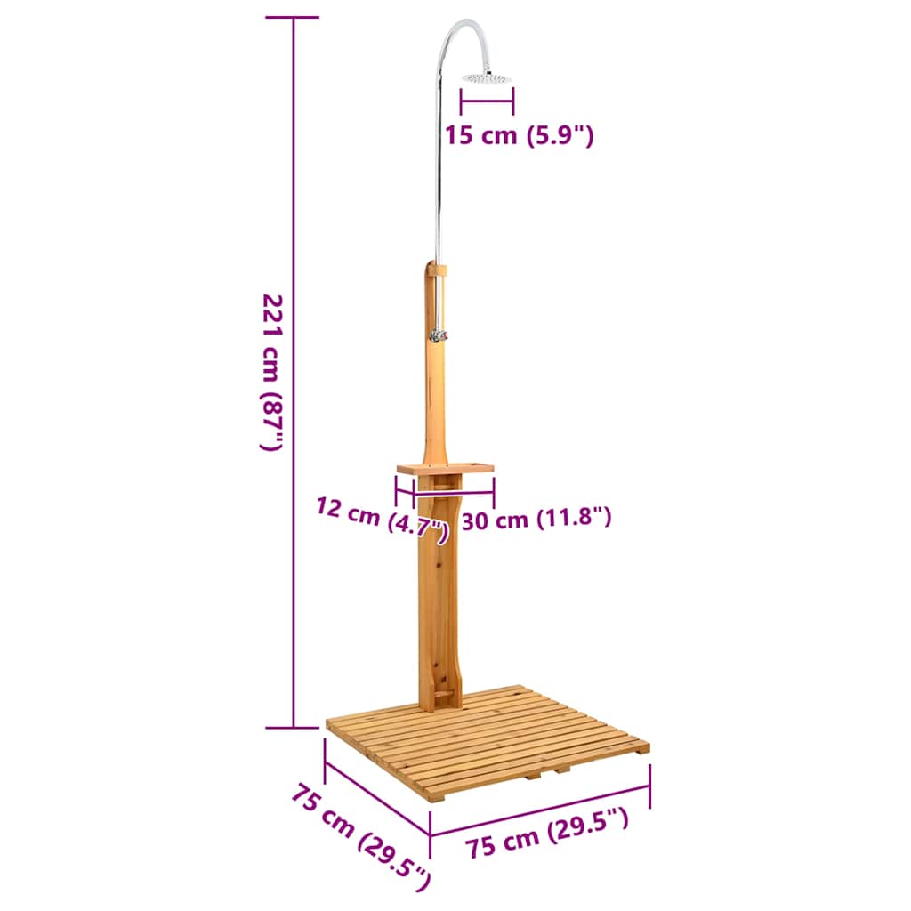 Diese Gartendusche ist aus Hartholz und Tannenholz gefertigt, und zeichnet sich so durch Wetterfestigkeit und Langlebigkeit aus. Die Dusche hält Sonnenlicht, Regen und Frost stand und ist ideal, um kühle Erfrischung im Garten, auf dem Campingplatz oder nach dem Schwimmen im Freien zu bieten. Ein drehbarer Duschkopf und der einstellbare Wasserdruck sind für eine bequemere Verwendung ausgelegt.