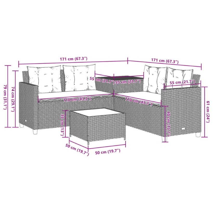 - Abmessungen: 171 x 171 x 74 cm (B x T x H)
