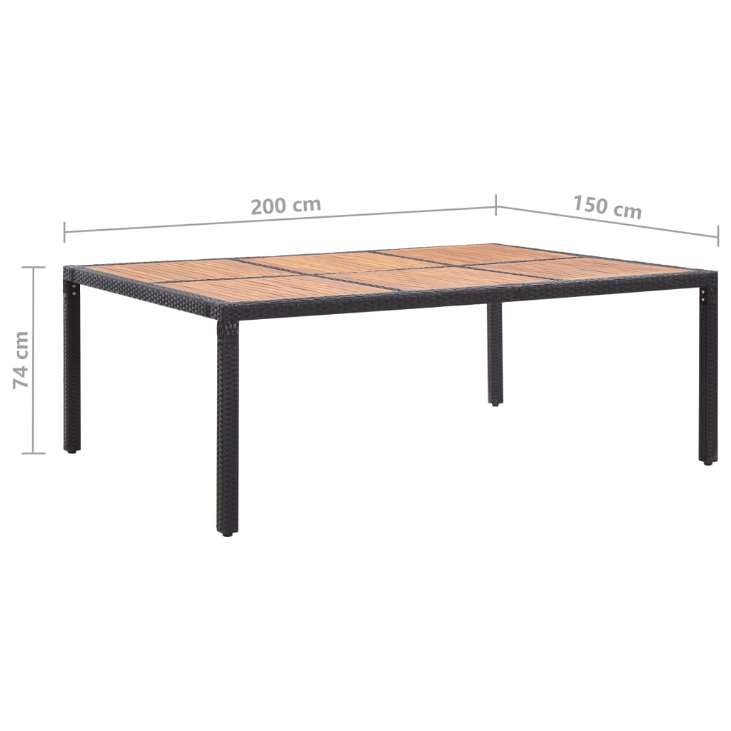 Gartentisch 200x150x75 cm Akazienholz und Poly Rattan – Massivholz Akazie