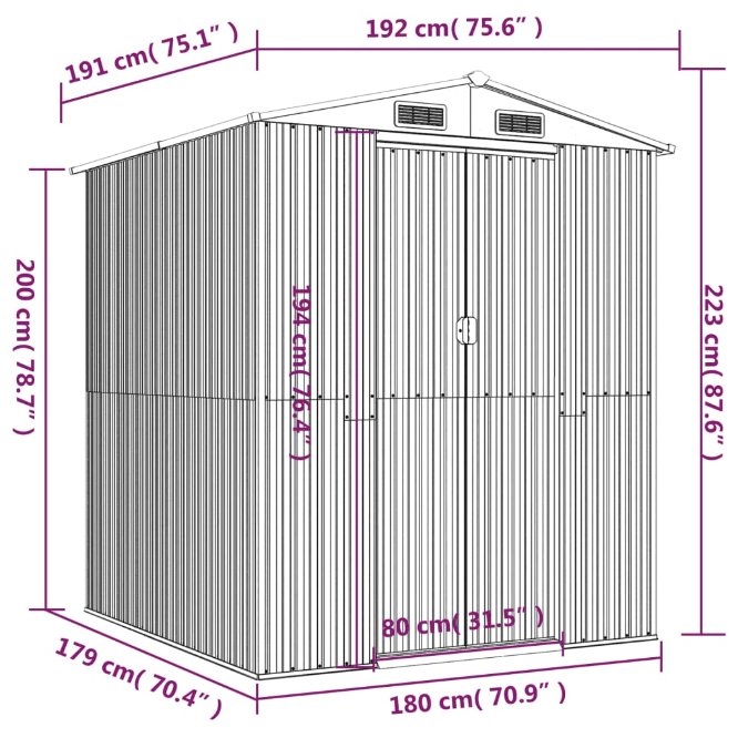 Dieses Gerätehaus sollte aus deinem Garten nicht fehlen, da es eine hervorragende Lösung für die Aufbewahrung von verschiedenen Gegenständen wie Werkzeugen, Poolzubehör, Gartengeräten und ähnlicher Ausrüstung bietet. Langlebiges Material: Der Geräteschuppen besteht aus verzinktem Stahl, der langlebig ist und nicht korrodiert oder durch widrige Wetterbedingungen beeinträchtigt wird.Viel Stauraum: Der Geräteschuppen ist erstaunlich geräumig und bietet Platz für eine Vielzahl von Werkzeugen, Gartenmöbeln und Geräten.Praktisches Design: Dieses Gartenhaus verfügt über Lüftungsöffnungen an der Vorder- und Rückseite, die eine hervorragende Luftzirkulation gewährleisten. Die doppelten Schiebetüren ermöglichen einen einfachen Zugang. Hinweis:Jedes Produkt wird mit einer Montageanleitung in der Verpackung für eine einfache Montage geliefert.