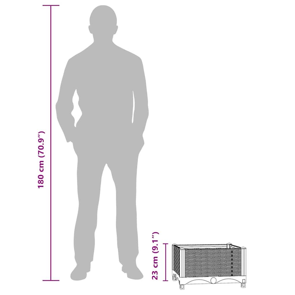 Dieses Hochbeet ist eine ausgezeichnete Wahl, um Blumen oder Gemüse anzubauen – eine großartige Bereicherung für deinen Garten! Langlebiges Material: Polypropylen ist ein beliebter Kunststoff, der bei der Herstellung von Gartenmöbeln häufig verwendet wird. Er ist leicht, robust und stoßfest.Viel Platz: Der Blumenkasten ist tief und breit genug, um eine große Menge Erde aufzunehmen und reichlich Platz für deine Pflanzen, Gemüse, Kräuter und Blumen zu bieten.Stilvolles Design: Mit seiner stilvollen Rattan-Optik macht das Hochbeet in Gärten, auf Terrassen, Balkonen, in Restaurants, Cafés und fast überall eine gute Figur. Gut zu wissen:Um die Montage so einfach wie möglich zu machen, wird jedes Produkt mit einer Anleitung geliefert.
