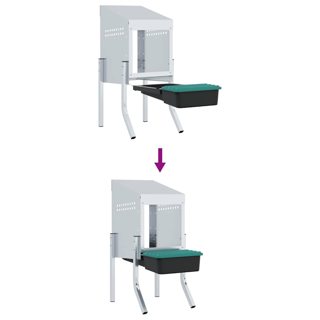 Verbessern Sie Ihre Geflügelhaltung mit dem Hühnernistkasten und bieten Sie Ihren Hühnern einen privaten, komfortablen Legebereich. Robustes und langlebiges Material: Dieser aus verzinktem Stahl und robustem Polypropylen-Kunststoff gefertigte Nistkasten ist auf Langlebigkeit ausgelegt und bietet Ihren Hühnern lang anhaltende Leistung und Schutz vor rauen Außenbedingungen.Bequemes Eiersammeln: Der leicht anzuhebende Deckel und das ausrollbare Design ermöglichen ein müheloses Eiersammeln, ohne dass die Hühner gestört werden. Das durchdachte Design schafft eine ruhige Umgebung für Ihre Hühner und macht das Eiersammeln reibungslos, problemlos und pflegeleicht.Individuelle Höhe: Der Nistkasten ist einfach zu installieren, da er mit dem notwendigen Zubehör geliefert wird. Dank zusätzlicher Bohrlöcher können Sie die Beine auf zwei verschiedene Höhen einstellen. Befolgen Sie einfach die beiliegenden Anweisungen für einen einfachen Aufbau.Durchdachte Belüftung: Der Nistkasten ist mit Lüftungsschlitzen und einer offenen Vorderseite ausgestattet, um eine optimale Luftzirkulation zu gewährleisten und so eine trockene, geruchsfreie und komfortable Umgebung für Ihre Hühner zu schaffen und gleichzeitig Feuchtigkeits- und Geruchsbildung zu verhindern.Mühelose Reinigung: Die Ablage lässt sich zur schnellen Reinigung leicht herausnehmen, während die glatten Oberflächen sowohl der Ablage als auch des Kastens ein problemloses Erlebnis gewährleisten und dazu beitragen, eine sauberere und hygienischere Umgebung für Ihre Hühner zu schaffen. Gut zu wissen:Um Kratzer zu vermeiden, wird empfohlen, während der Installation Handschuhe zu tragen.