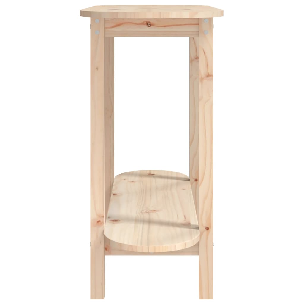 Verleihe deiner Einrichtung einen Hauch Eleganz mit diesem Konsolentisch aus Holz. Massives Kiefernholz: Massives Kiefernholz ist ein wunderschönes Naturmaterial. Kiefernholz weist eine gerade Maserung auf und die Aststellen verleihen dem Material seine charakteristische, rustikale Optik. Stabil: Der Holzrahmen sorgt für Robustheit und Stabilität. Zusätzlicher Stauraum: Der Flurtisch verfügt über eine zusätzliche Ablage, die einen ausgezeichneten Platz bietet, um deine Zeitschriften, Bücher und Lieblingssachen gut organisiert und griffbereit aufzubewahren. Robuste Tischplatte: Die robuste Tischplatte bietet den perfekten Platz für Topfpflanzen, gerahmte Fotos und andere Dekoartikel. Achtung:Um das Umkippen zu verhindern, muss dieses Produkt mit der mitgelieferten Wandhalterung gesichert werden. Hinweis:Jedes Produkt wird mit einer Montageanleitung in der Verpackung für einen einfachen Zusammenbau geliefert.