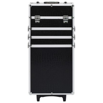 Kosmetikkoffer Aluminium Schwarz mit Krokoprägung