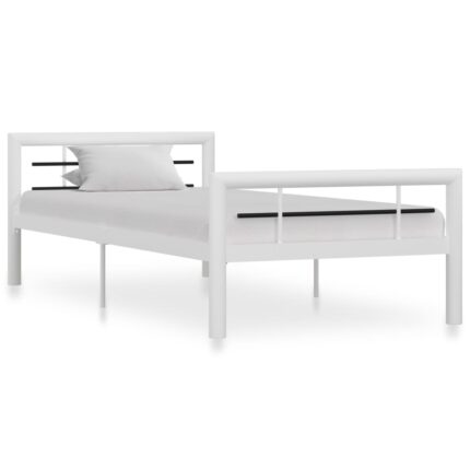 Bettgestell Weiss und Schwarz Metall 90×200 cm