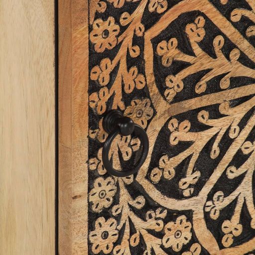 Mit seinem Retro-Design ist dieser Nachttisch eine zeitlose Ergänzung zu deiner Inneneinrichtung. Massives Mangholz: Massives Mangoholz ist ein robustes, tropisches Hartholz, aus dem sich robuste Möbel herstellen lassen. Seine optisch ansprechende Holzmaserung macht jedes Möbelstück zu einem Unikat. Der Schrank ist aus massivem Mangoholz gefertigt und daher langlebig und stabil.Praktische Tür: Sorge für Ordnung in deinem Wohnraum, indem du wichtige Kleinigkeiten in diesem Nachttisch hinter der Tür versteckst.Stabile Oberplatte: Die Oberplatte des Beistellschranks bietet den perfekten Platz, um Dekoartikel, Bilderrahmen und Topfpflanzen zur Schau zu stellen.Starke Beine: Die Eisenbeine tragen zur Robustheit und Stabilität der Nachtkommode bei.Retro-Stil: Mit einem handgeschnitzten Blumenmuster versehen, bringt dieser Nachttisch den Luxus des Retro-Stils in dein Interieur und wird überall ein echter Hingucker sein. Gut zu wissen:Jedes Stück ist ein Unikat, das in Farbe und Maserung variiert. Die Lieferung erfolgt in zufälliger Reihenfolge, wodurch die Exklusivität und Individualität deines Produkts gewährleistet wird.