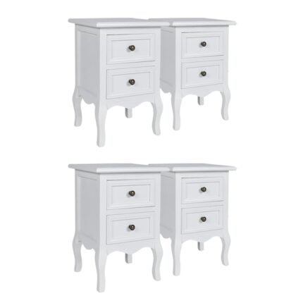 Nachttische 4 Stück mit 2 Schubladen Weiss MDF