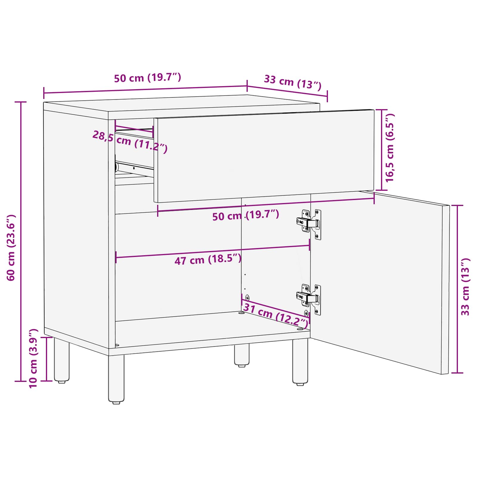 - Gesamtabmessungen: 50 x 33 x 60 cm (B x T x H)