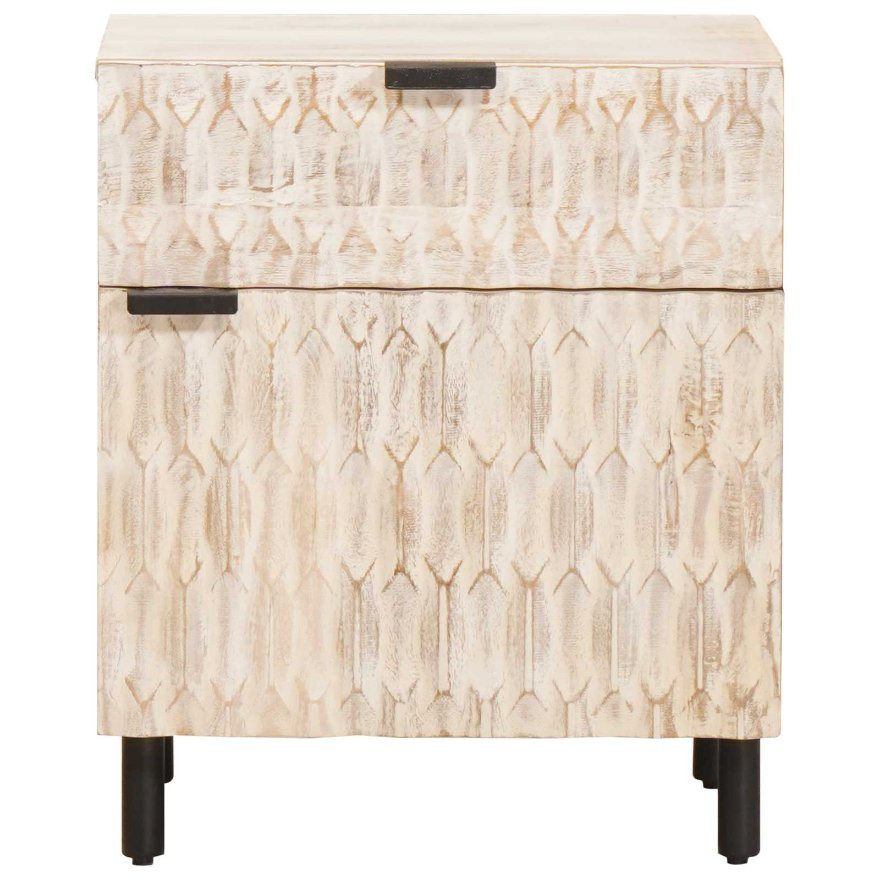Nachttisch Hill Weiss 46x35x49,5 cm Massivholz Kiefer – Massivholz Kiefer
