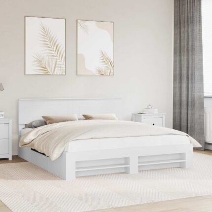 Bettrahmen mit Schubladen Weiss 200 x 200 cm Ingenieurs Holz