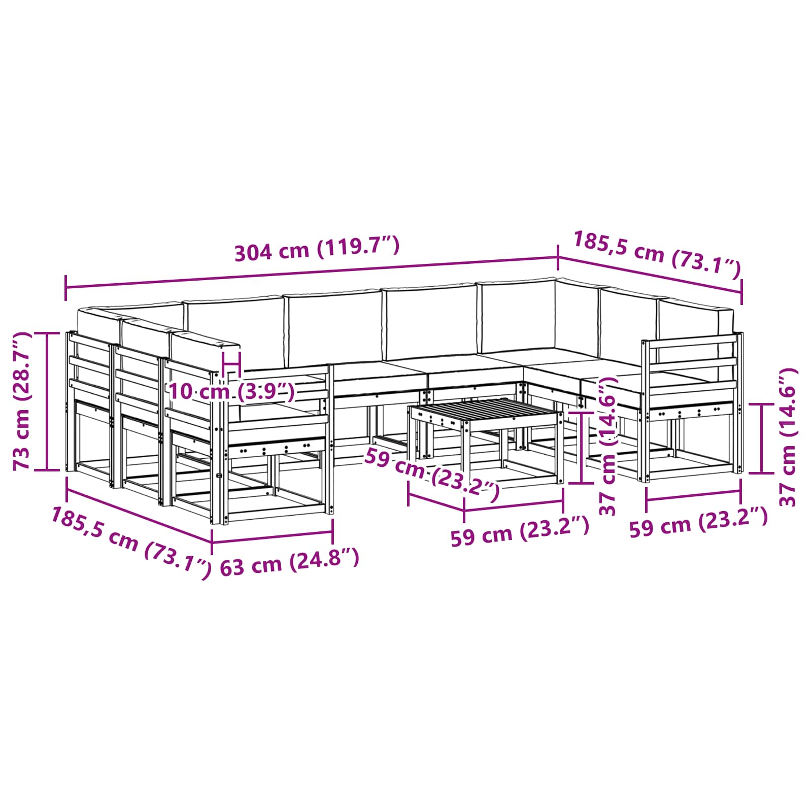 - Gesamtabmessungen: 59 x 59 x 37 cm (L x B x H)