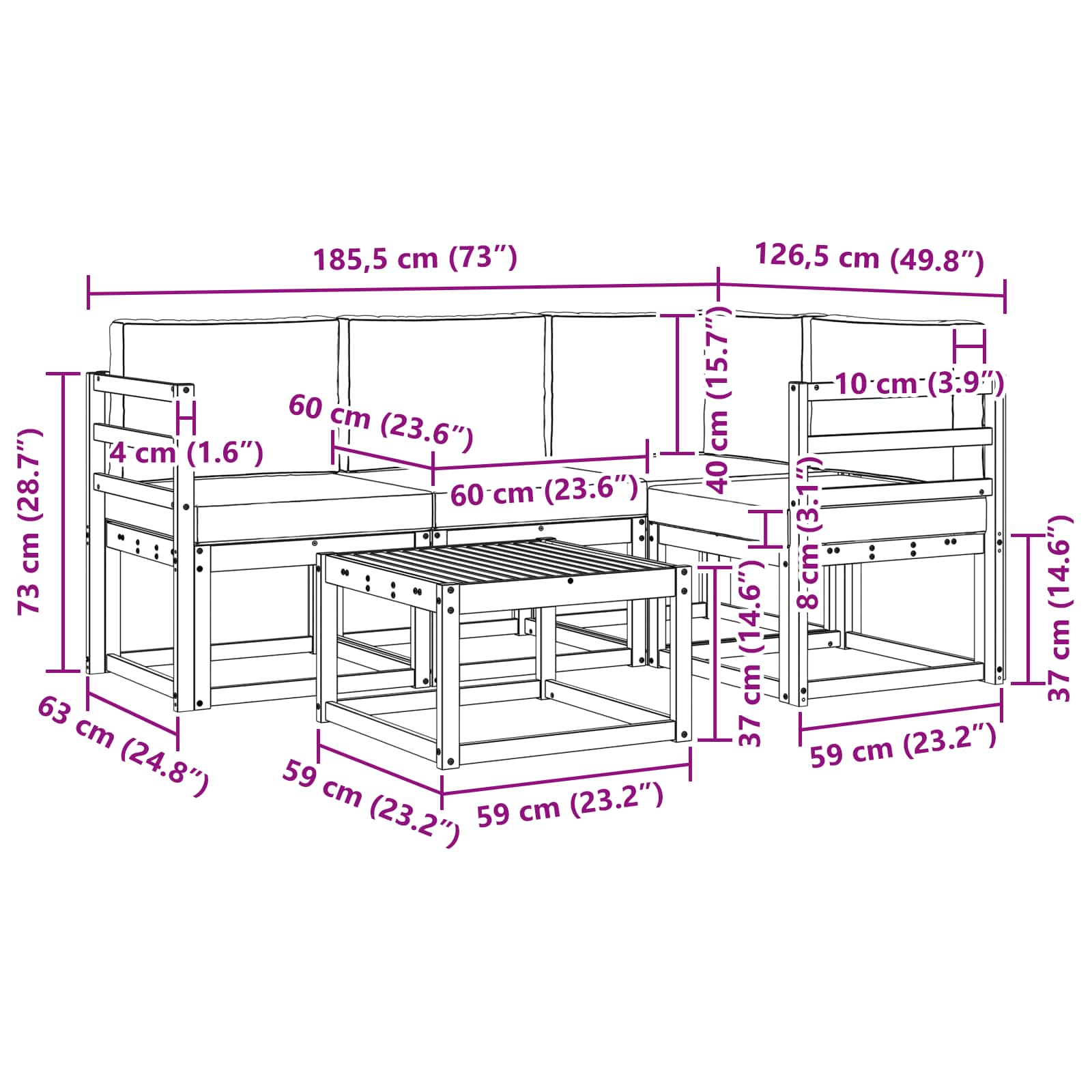 - Gesamtabmessungen: 59 x 59 x 37 cm (L x B x H)