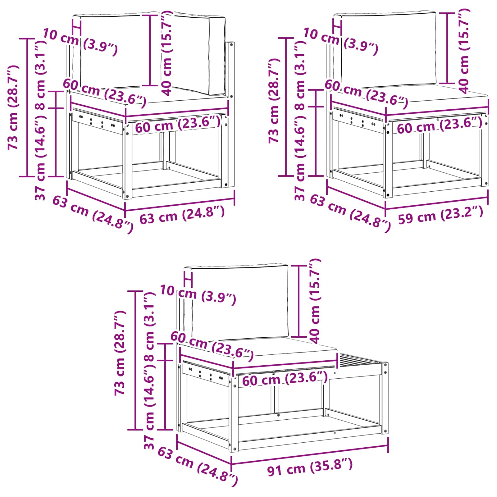 • 3 x Mittelsofa: 59 x 63 x 73 cm (L x B x H)