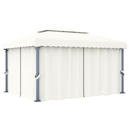 Pavillon mit Vorhang 4×3 m Cremeweiss Aluminium