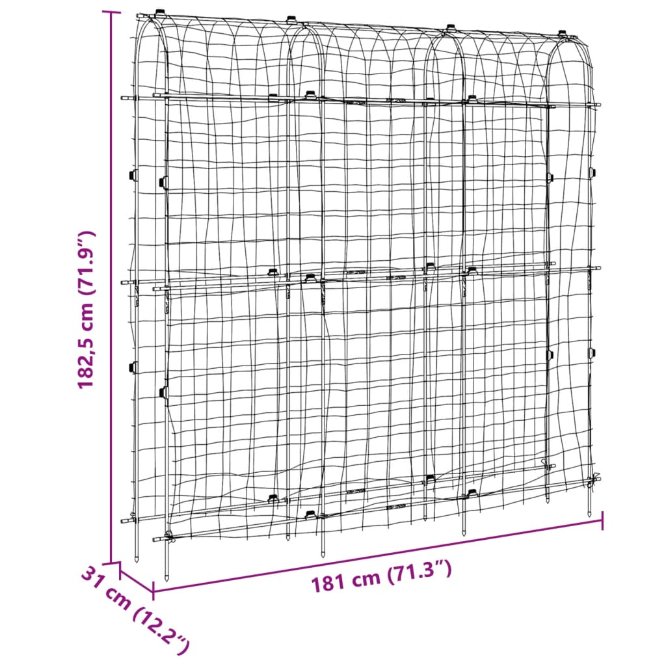 Das Ranknetz ist U-förmig gestaltet, sodass du auf beiden Seiten verschiedene Kletterpflanzen anbauen kannst. Langlebig und stabil: Das Ranknetz besteht aus Stahl mit einer PE-Beschichtung, wodurch es robust, korrosionsbeständig und langlebig ist. Darüber hinaus verfügt die Rankhilfe über ein U-Rahmen-Design, das maximale Stabilität für deine Kletterpflanzen gewährleistet.Praktisches Design: Das Ranknetz verhindert, dass Pflanzen und Früchte auf den Boden fallen und erleichtert so das Ernten. Zusätzlich enthält es Clips, mit denen du deine Pflanzen sichern kannst.Einfach aufzustellen: Die Rankhilfe ist einfach auf- und abzubauen. Zusätzlich kann die Breite des U-Rahmens bis zu einem gewissen Grad angepasst werden.Breite Anwendungen: Diese Rankhilfe mit verdickten Metallrohren eignet sich für eine Vielzahl von Kletterpflanzen, darunter Trauben, Erbsen, Gurken, Auberginen, Rosen und mehr. Sie wird dir helfen, einen schönen und produktiven Garten anzulegen.