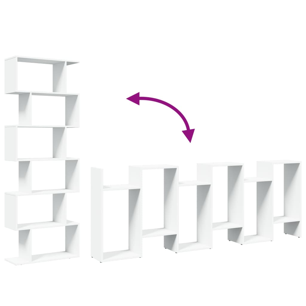 Das Raumteiler-Bücherregal im geometrischen Design bietet viel Stauraum und eignet sich perfekt, um deinen Wohnraum stilvoll und aufgeräumt zu halten! Starkes und langlebiges Material: Holzwerkstoff ist ein langlebiges und robustes Material mit einer glatten Oberfläche, das gegen Feuchtigkeit, Verformung und Rissbildung beständig ist; dadurch ist es eine zuverlässige Wahl für die Herstellung von Möbeln.Reichlich Stauraum: Das Bücherregal ist mit versetzten Fächern ausgestattet und bietet reichlich Platz für deine Bücher oder Dekoartikel. Kleinere Gegenstände können auch auf den seitlichen Plattformen platziert werden, um den Raum optimal zu nutzen und gleichzeitig Ordnung zu halten.Flexible Aufstellungsmöglichkeiten: Das Raumtrenner-Regal kann sowohl in der Breite als auch in der Höhe auf den Boden gestellt werden und bietet so unterschiedliche Möglichkeiten der Raumgestaltung.Vielseitig einsetzbar: Das Bücherregal kann auch als Raumteiler verwendet werden und passt problemlos zu jedem Einrichtungsstil. Es findet Platz im Wohnzimmer, um Dekoartikel zur Schau zu stellen, im Büro, um Bücher und Unterlagen zu verstauen, im Schlafzimmer, um Alltagssachen aufzubewahren, oder im Keller, um Haushaltssachen zu lagern.Pflegeleicht: Dank seiner glatten Oberfläche lässt sich das Bücherregal einfach mit einem feuchten Tuch reinigen und erfordert wenig Pflege. Achtung:Um ein Umkippen zu vermeiden, sollte dieses Produkt mit der mitgelieferten Wandhalterung gesichert werden. Gut zu wissen:Schrauben und Dübel für die Montage an der Wand sind nicht enthalten. Passendes Montagezubehör muss separat gekauft werden. Wenn du dir bezüglich der Montage nicht sicher bist, wende dich bitte an einen Fachmann. Bitte lies und befolge jeden Schritt in der Anleitung.