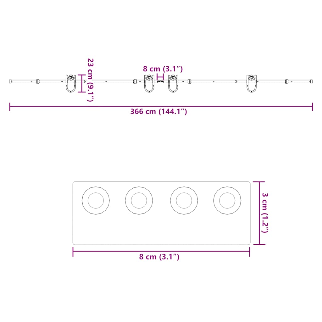 - Gesamtlänge der Gleitschiene: 366 cm