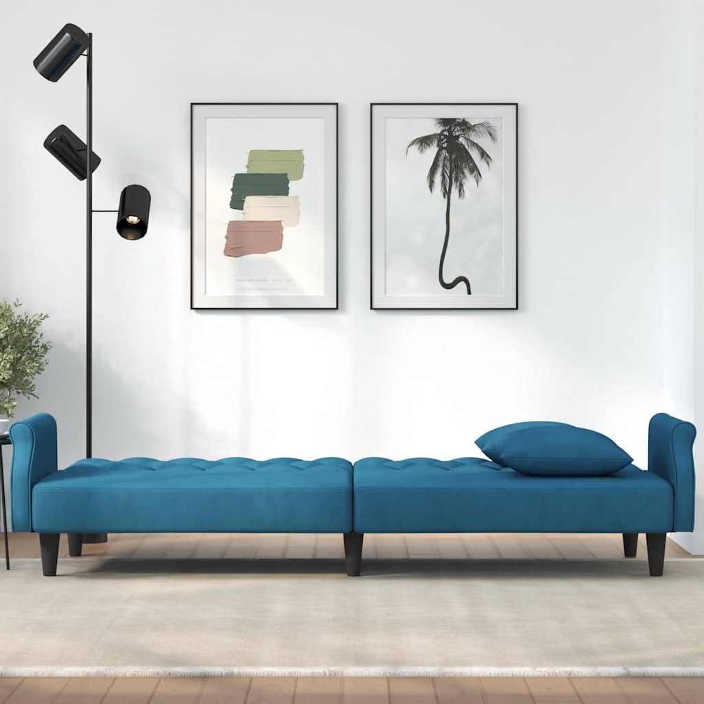 Dieses Schlafsofa eignet sich perfekt für die Übernachtung von Gästen und bietet tagsüber eine bequeme Sitzgelegenheit. Samtsofa: Samt ist ein weicher, luxuriöser Stoff, der sich durch seinen dichten Flor aus gleichmäßig geschnittenen Fasern auszeichnet. Samt fühlt sich unverwechselbar weich an und ist angenehm zu berühren. Verstellbare Rückenlehne: Du kannst die beiden separaten Rückenlehnen des Bettsofas teilweise oder ganz nach unten schieben, um einen idealen Platz für ein Nickerchen oder ein Doppelbett zu schaffen. Bequemes Sitzerlebnis: Mit dick gepolsterten Sitzflächen, Armlehnen und Rückenlehnen versehen, ist das Schlafsofa sehr bequem.Praktische Kissen: Diese Kissen werten nicht nur deine Einrichtung auf, sondern sorgen auch für zusätzlichen Komfort beim Sitzen oder Liegen. Robuster und stabiler Rahmen: Der Rahmen aus Sperrholz verleiht der Schlafcouch Robustheit und Stabilität. Gut zu wissen:Um die Montage so einfach wie möglich zu machen, wird jedes Produkt mit einer Anleitung geliefert.
