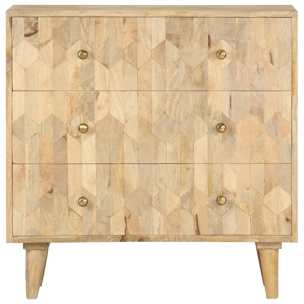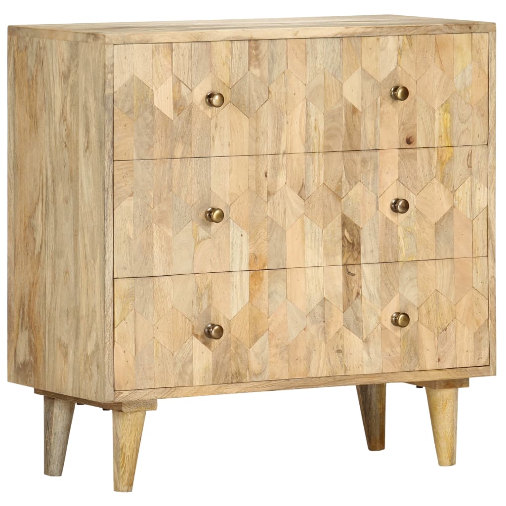 Diese Schubladenkommode besticht durch seinen Retro-Stil, der ihn zu einer großartigen Ergänzung Ihrer Raumausstattung macht. Langlebiges Material: Der Beistellschrank besteht aus massivem Mangoholz und Holzwerkstoff, das solide, stabil, langlebig und schön ist. Die Handwerkskunst trägt zum spektakulären Retro-Stil der Schubladenkommode bei. Reichlich Stauraum: Diese Kommode verfügt über 3 Schubladen, die ideal sind, um deine Sachen ordentlich aufzubewahren. Stabile Oberplatte: Die stabile Oberplatte bietet den perfekten Platz für Topfpflanzen, Fotorahmen und andere Dekoartikel. Achtung:Um ein Umkippen zu vermeiden, sollte dieses Produkt mit der mitgelieferten Wandhalterung gesichert werden. Gut zu wissen:Jedes Stück ist ein Unikat, das in Farbe und Maserung variiert. Die Lieferung erfolgt in zufälliger Reihenfolge, wodurch die Exklusivität und Individualität deines Produkts gewährleistet wird.