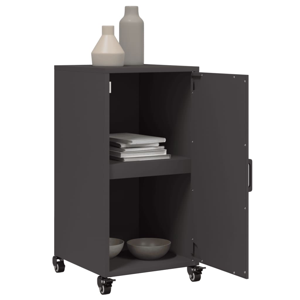 Auf der Suche nach einem stilvollen Sideboard? Dieses gut gestaltete Sideboard verleiht deiner Einrichtung eine elegante Note! Langlebiges Material: Stahl ist ein außergewöhnlich hartes und starkes Material. Er bietet Robustheit und Stabilität. Kaltgewalztes Stahlblech weist eine glatte Oberfläche auf und lässt sich präzise verarbeiten.Reichlich Stauraum: Dieser Schrank bietet praktischen Stauraum für Zeitschriften, Bücher, Bürobedarf, Dokumente und andere Gegenstände, die hier gut geordnet und in Reichweite aufbewahrt werden können.Pflegeleicht: Der Schrank ist mit einem feuchten Tuch leicht zu reinigen und erfordert wenig Pflege.Einfaches Umstellen: Dieses Sideboard verfügt über 4 Rollen und lässt sich daher flexibel und mühelos umher verschieben.