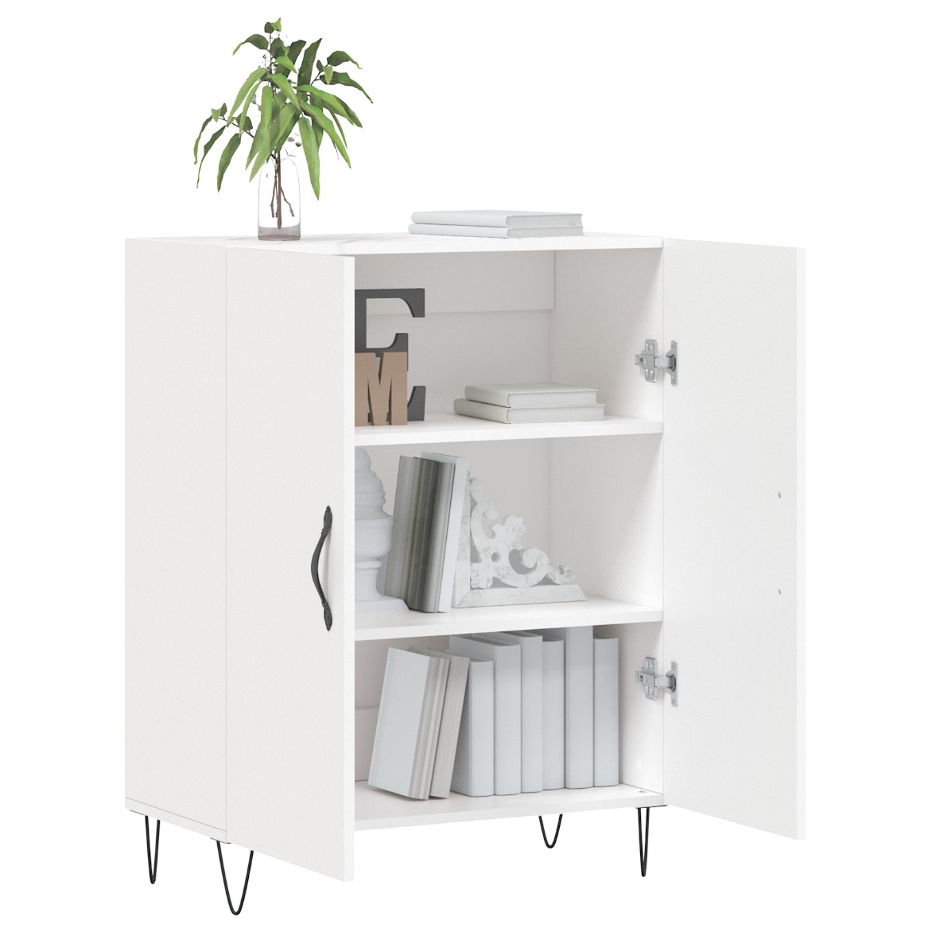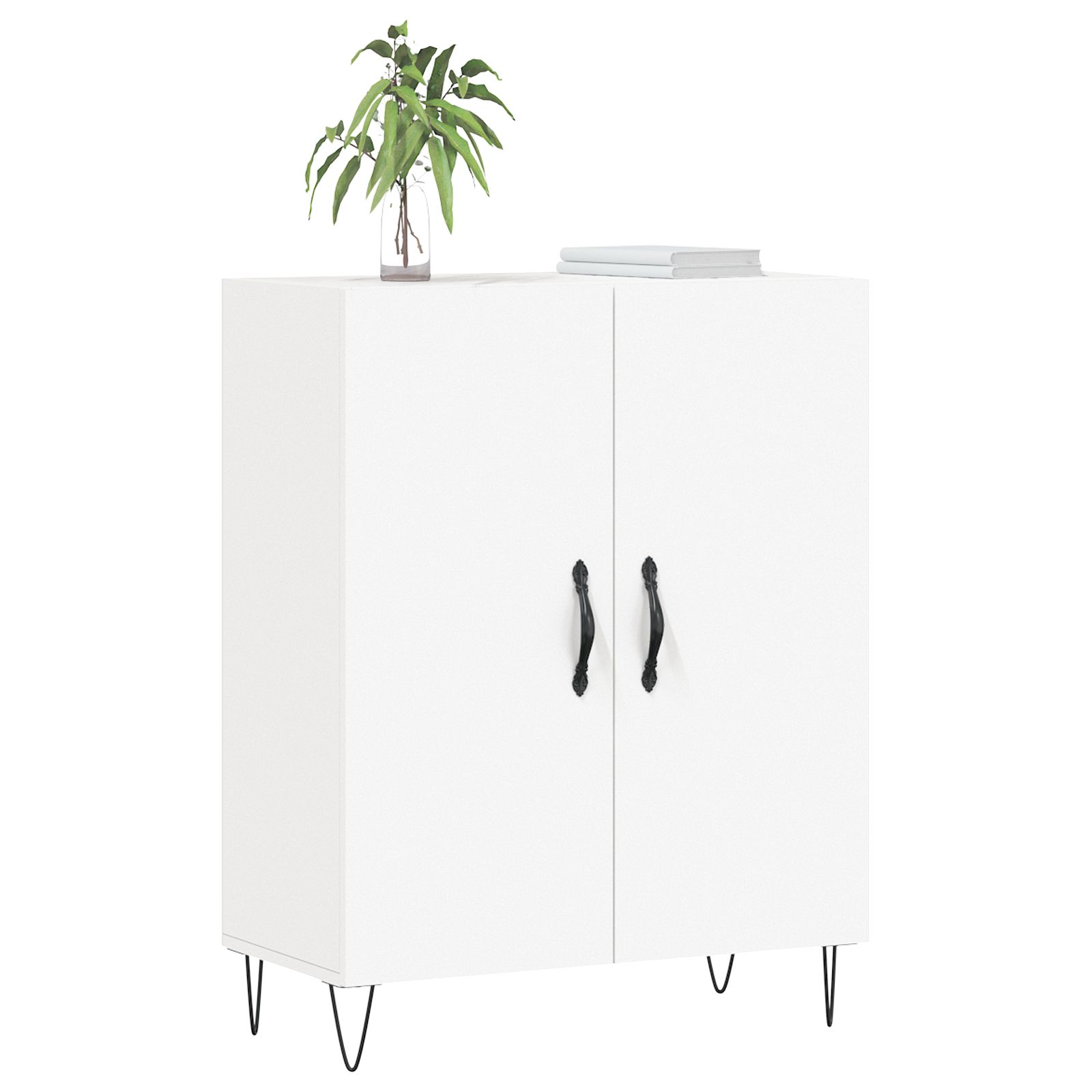 Mit seinem zeitlosen Design ist dieses klassische Sideboard eine ausgezeichnete Bereicherung für Ihr Zuhause. Langlebiges Material: Holzwerkstoff ist ein Material von außergewöhnlicher Qualität mit glatter Oberfläche, das sich durch Festigkeit, Stabilität und Feuchtigkeitsbeständigkeit auszeichnet. Aus Holzwerkstoff gefertigt, lässt sich der Schrank mit einem feuchten Tuch leicht reinigen.Viel Stauraum: Das Sideboard bietet viel Platz, um verschiedene Alltagssachen gut organisiert und in Reichweite aufzubewahren.Präsentation: Die Oberplatte eignet sich ideal, um Dekoartikel, Fotoalben oder kleine Pflanzen zur Schau zu stellen.Metallfüße: Die Metallfüße verleihen ihm eine angenehme Optik und sorgen gleichzeitig für Stabilität. Achtung:Um ein Umkippen zu vermeiden, sollte dieses Produkt mit der mitgelieferten Wandhalterung gesichert werden.
