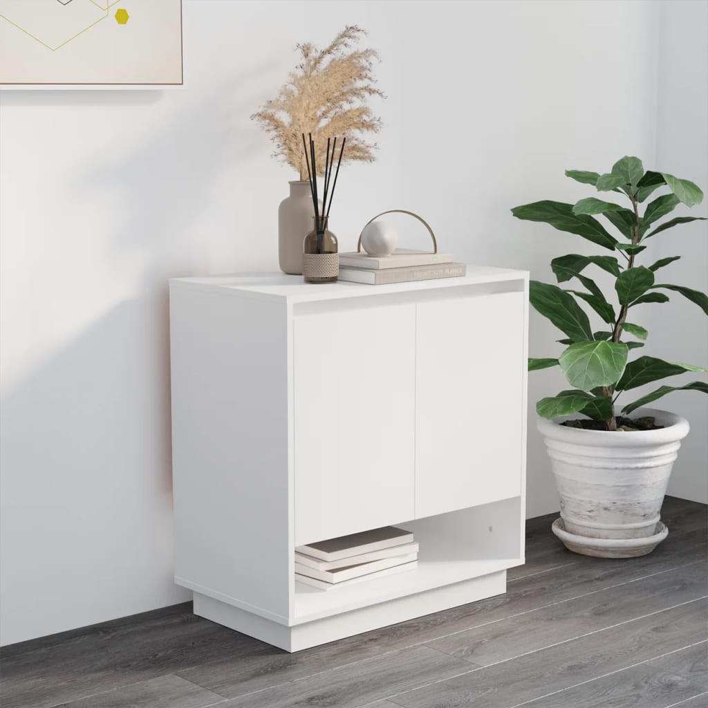 Dieses schlichte Sideboard mit minimalistischem Design ist sowohl praktisch als auch aussergewöhnlich dekorativ für Ihr Zuhause. Mit seinen Türen und Fächern bietet der Beistellschrank reichlich Stauraum, um verschieden Alltagssachen ordentlich und griffbereit aufzubewahren. Die robuste Tischplatte eignet sich perfekt, um Dekoartikel, Bilderrahmen und Topfpflanzen zur Schau zu stellen. Darüber hinaus lässt sich der Lagerschrank mit einem feuchten Tuch leicht reinigen.