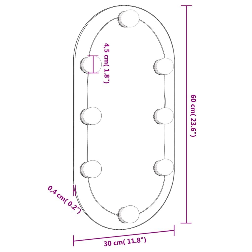 Wandspiegel mit LED-Leuchten 20x50 cm Glas Oval