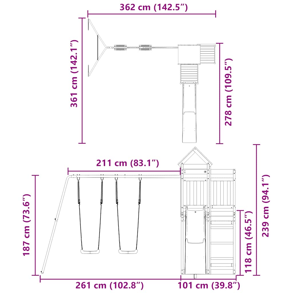 - Spielturm-Material: Unter Kesseldruck imprägniertes Kiefernholz