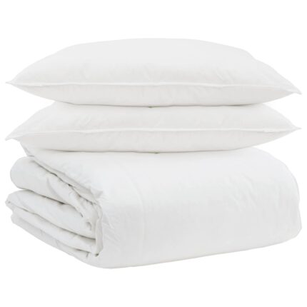 Bettdecken Set mit Kissen 3 pcs Weiss Daunenfeder