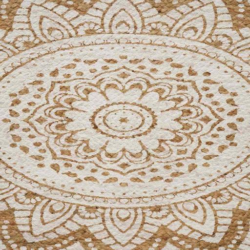 Teppich Handgefertigt Jute Weiss und Natur 90 cm