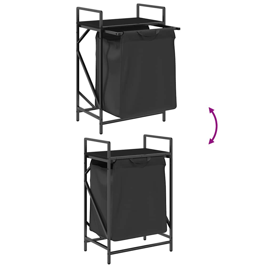 Wäschekorb 1 Fach mit Ablage Schwarz Eichen-Optik