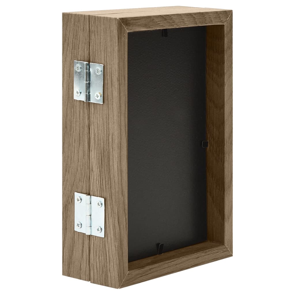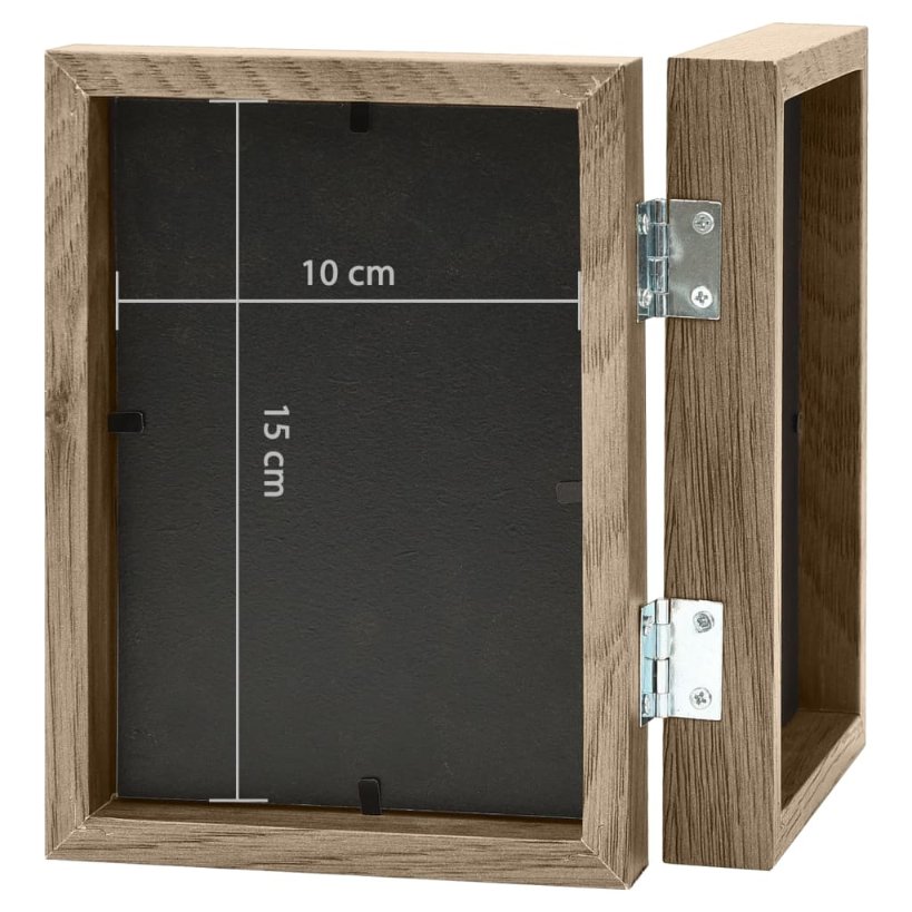 Stellen Sie Ihre schönsten Momente mit diesem trendigen Zweifach-Bilderrahmen zur Schau. Ihre Erinnerungen werden stilvoll präsentiert und ein echter Hingucker sein. Der aufklappbare Bilderrahmen kennzeichnet sich durch klassische gerade Linien und verleiht Ihrem Wohnraum eine lebendige und moderne Note. Die MDF-Platte an der Rückseite und das harte PS-Material an der Vorderseite bieten optimalen Schutz. Dank der Verriegelung auf der Rückseite können Sie Ihre Bilder ganz einfach austauschen. Durch sein Klappdesign kann dieser Fotorahmen ohne Ständer auf dem Tisch stehen.