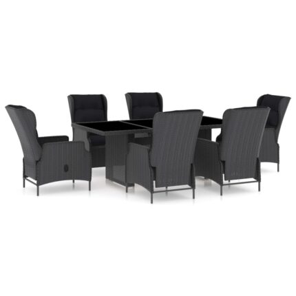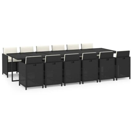 13-tlg. Garten-Essgruppe mit Kissen Poly Rattan Schwarz