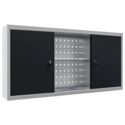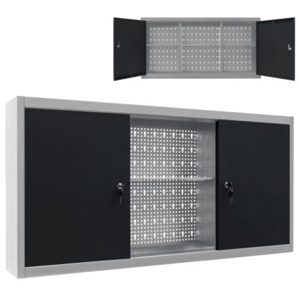 Wand-Werkzeugschrank Industriedesign Metall Grau und Schwarz