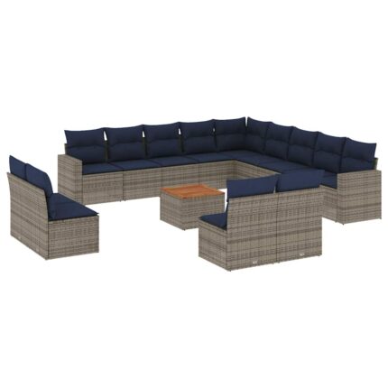 14-tlg. Garten-Sofagarnitur mit Kissen Grau Poly Rattan