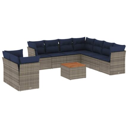 10-tlg. Garten-Sofagarnitur mit Kissen Grau Poly Rattan