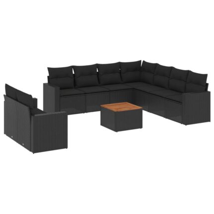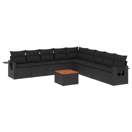 10-tlg. Garten-Sofagarnitur mit Kissen Schwarz Poly Rattan