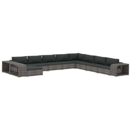 11-tlg. Garten-Lounge-Set mit Auflagen Poly Rattan Grau
